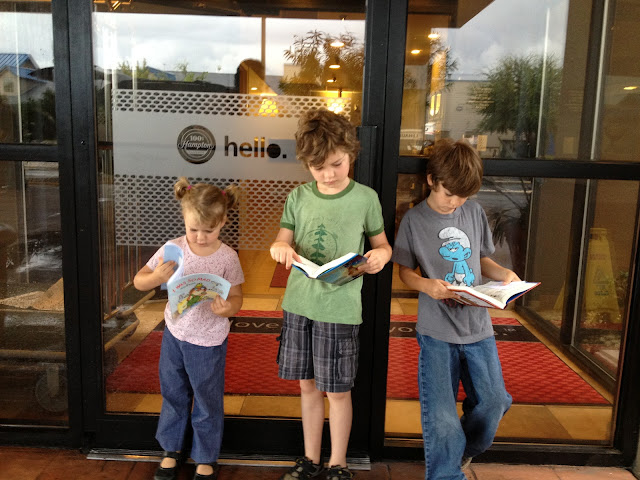 Izzy has read his first two books the last couple of weeks, the first two in the wimpy kid series. Hannah is spending so much time in elevators that I'm using them to teach her numbers. And two days ago, in a 3' pool that was shallow enough for her to stand in, she swam all the way accross (stopping to stand when she needed a breath). They are sprouting as fast or faster than ever, and being exposed to massive doses of US culture and history.